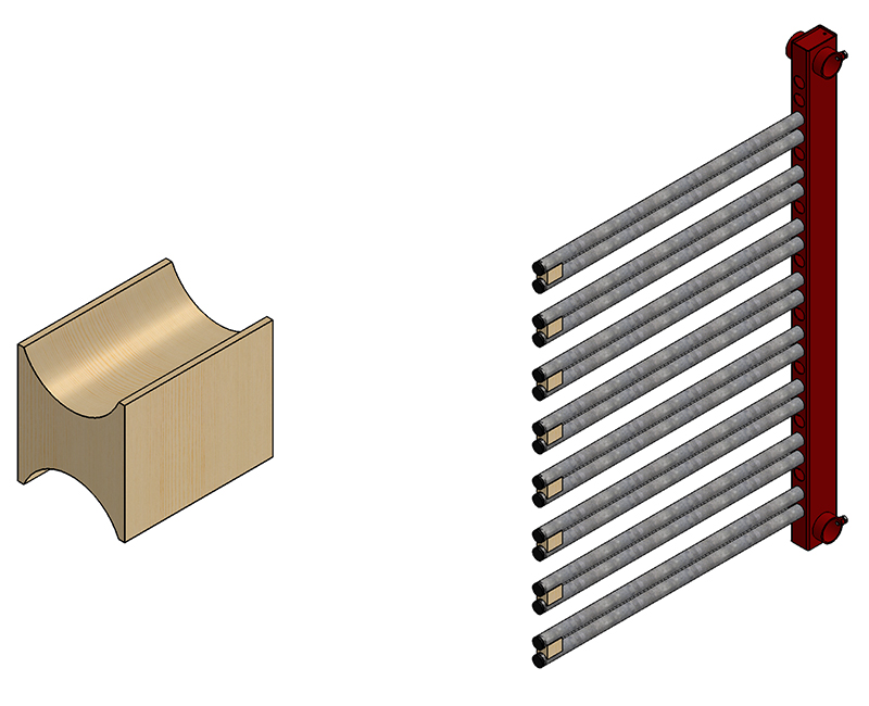 | Components with similar lengths, between 800 mm and 3000 mm approx. | Model -X DABELJU-VV, both sides used Quercus with a rack length between 800 mm and 2000 mm |